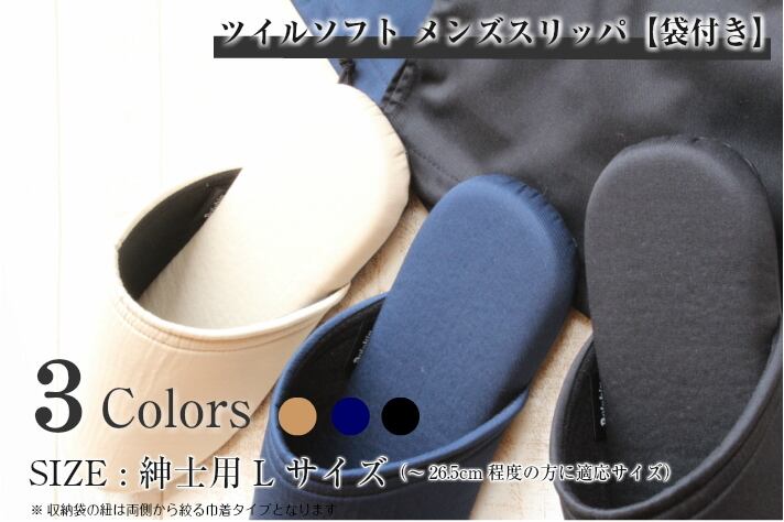 Dolphin 日本製 携帯スリッパ ツイルソフト スリッパ メンズ大きい サイズ【携帯用袋付き】【メンズ LLサイズ】